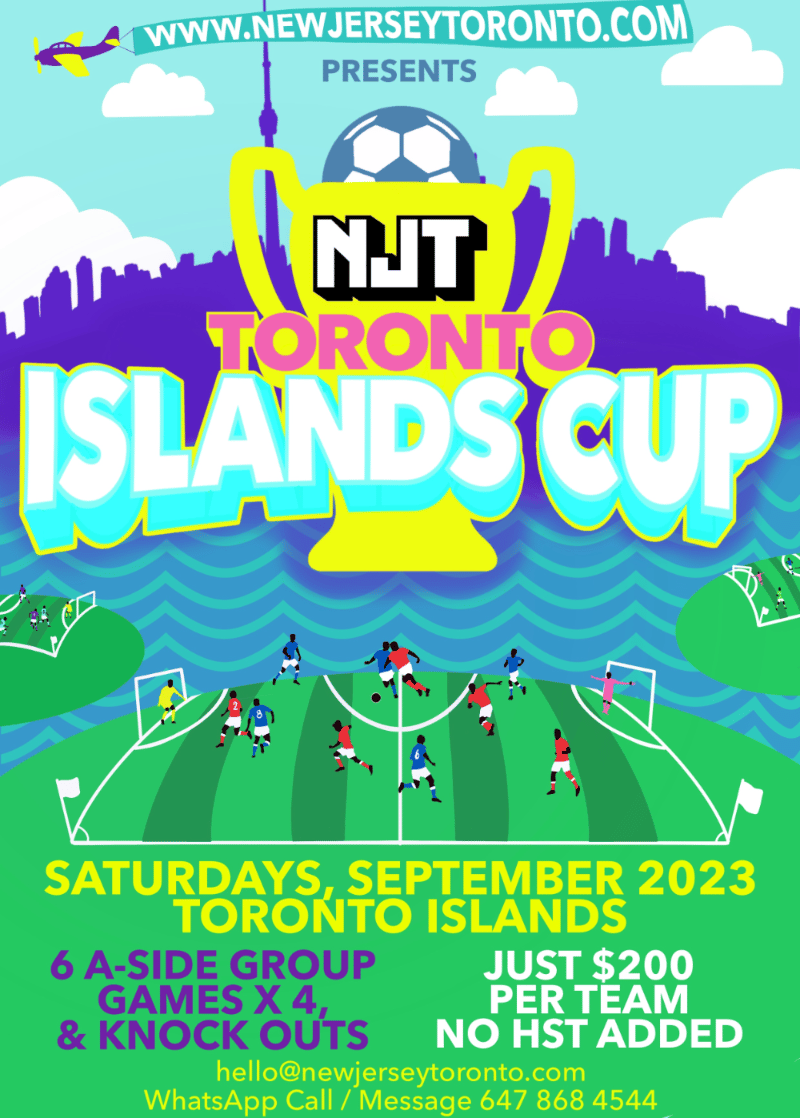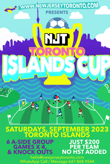 It's great to announce NJT’s new 6 a-side football/soccer tournaments which will be held on the beautiful Toronto Islands for the first time, during the month of September 2023. This is ultimately a fun tournament, run well with a social aspect too. After the games the teams can socialise on the island. I’ll have more info for the teams that want to enjoy this part